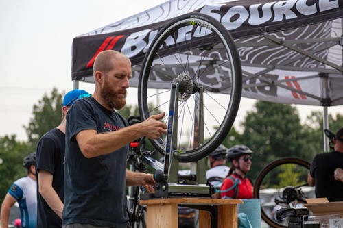 Grab your spoke wrench and adjust the spoke by tightening or loosening the nipples accordingly. Then, re-spin the wheel to check the results. You can continue to make further adjustments until you’re happy the wheel is spinning true.