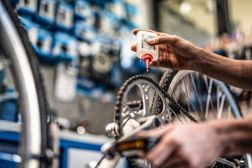 Bike oils and greases are both lubricants. Oil reduces friction between the moving parts on a bike by creating a sliding film between them, whereas grease is a solid barrier used on treads and bearings to protect them from dirt.